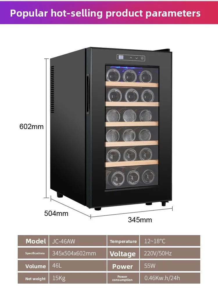 18 Bottle Wine Cooler Refrigerator , Quiet Freestanding Wine Fridge for Home/Office, 12℃-18℃ Adjustable Temperature,Glass Door