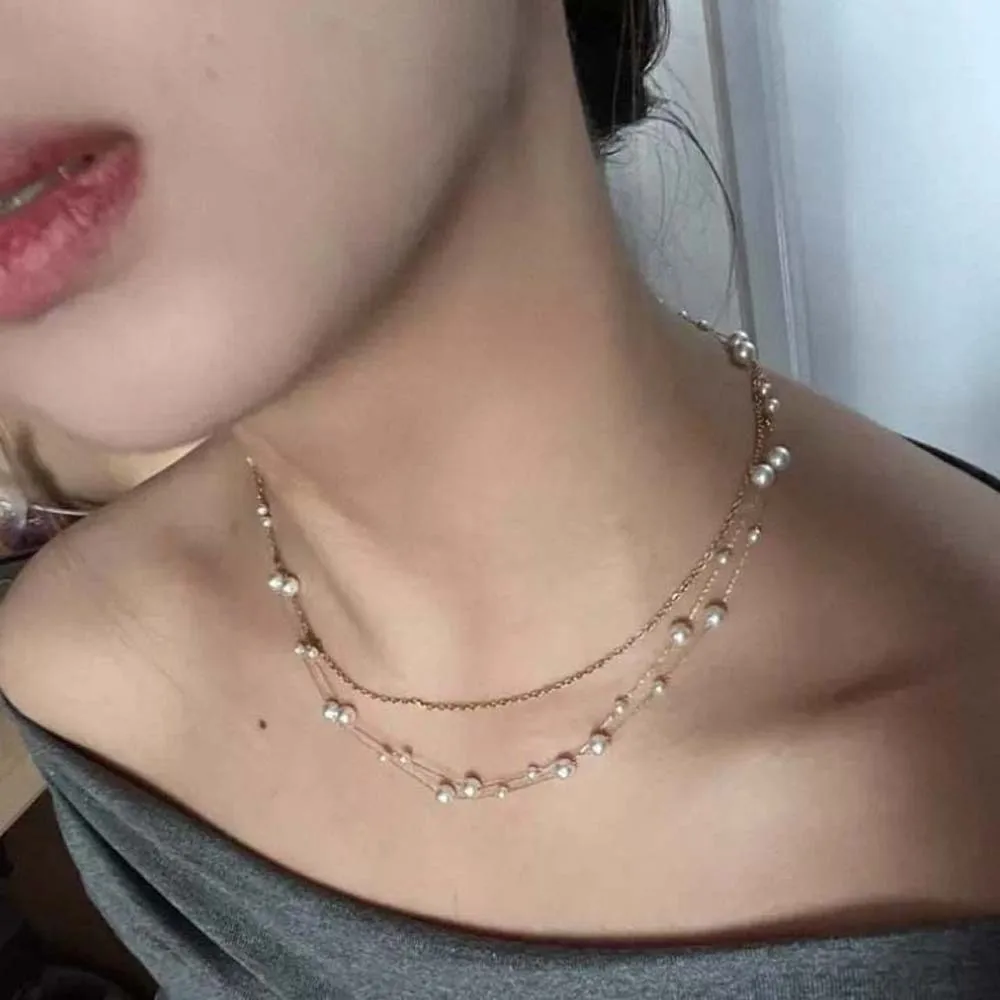 Brilliant Luxury Stacked Pearls Necklace Exquisite Versatile Collarbone Chain Golden Jewelry Beaded Choker Necklace Girls