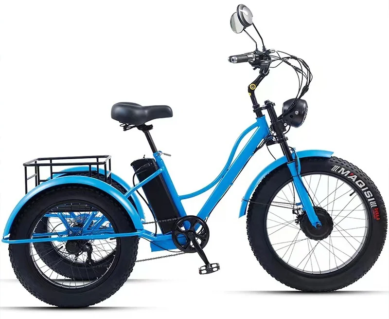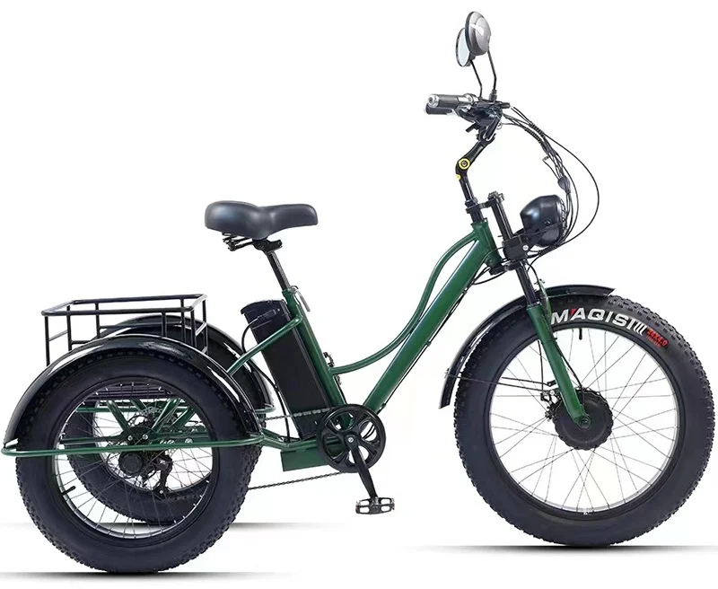 Electric Tricycle For Adults Battery Removable Range of 65km 750w 48W 7-Speed Transmission 24 Inch Snow Fat Bike Electic Bicycle